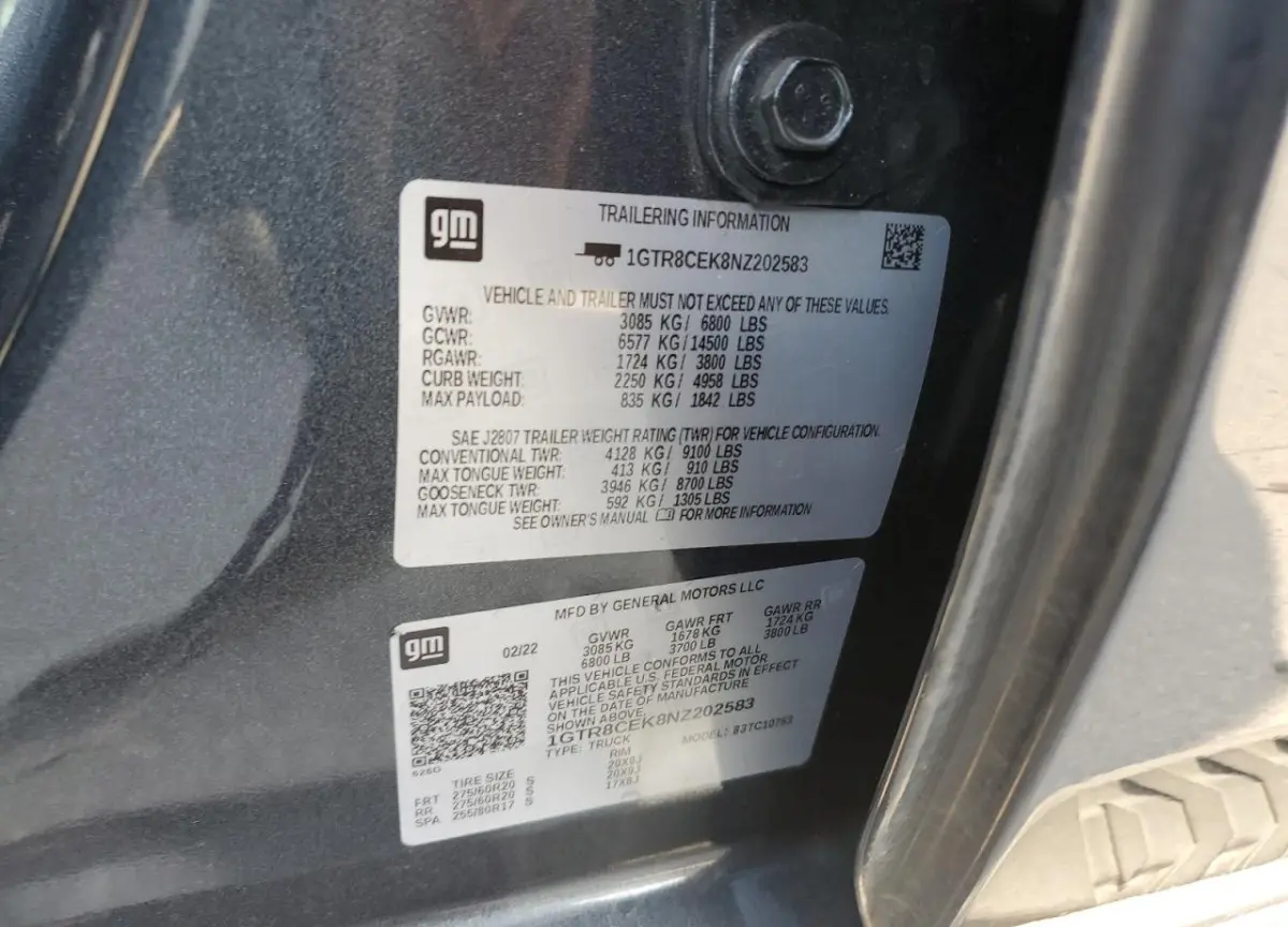 • Vin: 1GTR8CEK8NZ202583