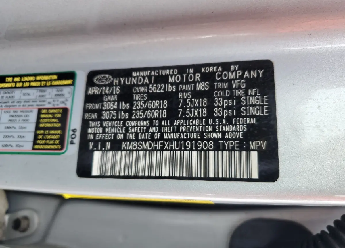 • Vin: KM8SMDHFXHU191908